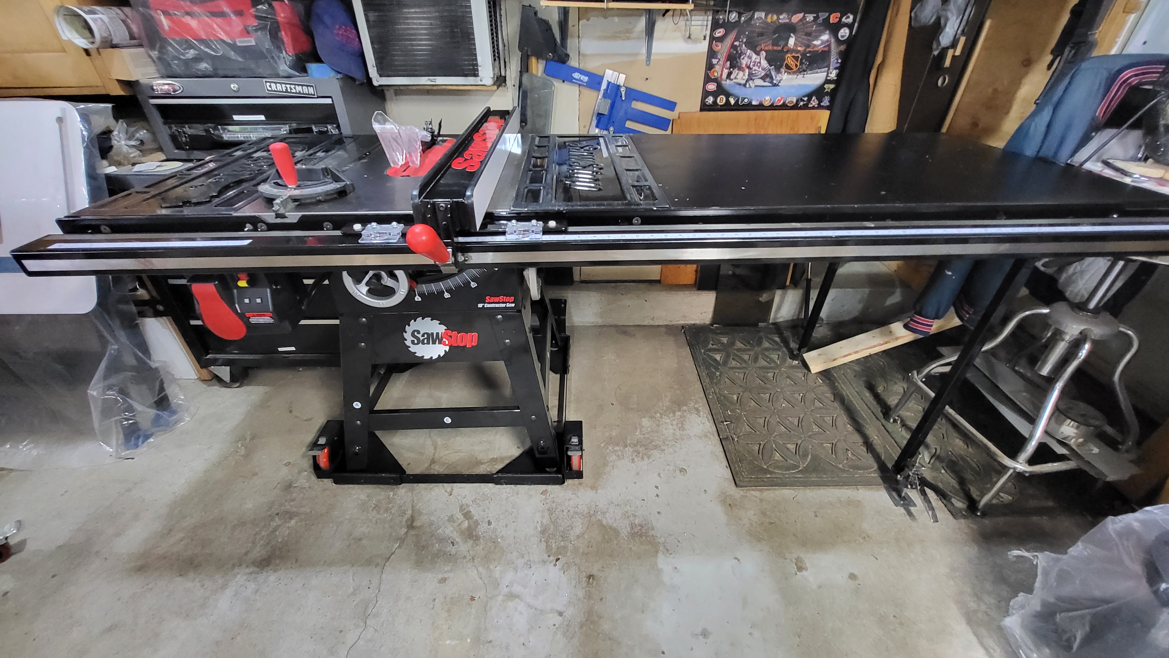 This SawStop 10 inch model CNS175-SFAA30 is in "Like New" condition. Motor 1.75HP,1ph, 120v,14A. 52" T-Glide Fence, Rails & Table, 85 1/4"w x 45"d x 341/4"h 335lbs- CNS175-TGP252, with Mobile Base MN-CNS-000. I traded for this beautiful saw and I found it just to big from my smaller space. I intend to purchase the jobsite saw pro in it's place. I priced the same SawStop at my local Rockler store at $2850.00. Talked to the SawStop rep. at the Expo and he felt it to be a very fair price. Buyer will need to picked up with some kind of trailor.